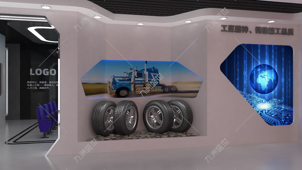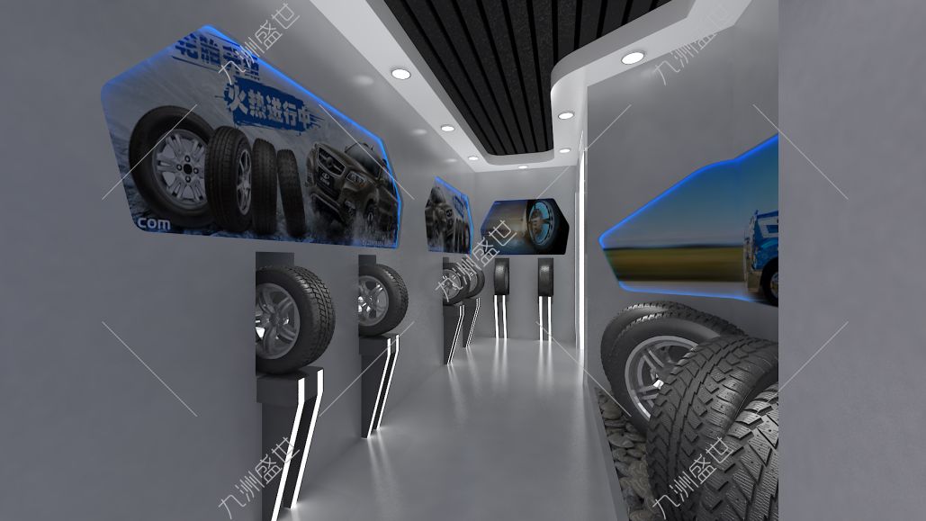 設計思路:選用不同深淺的灰色作為展館的主色調,營造出專業(yè)、穩(wěn)重的氛圍,與橡膠行業(yè)的特性相契合。展館內墻面、地面和天花板均可采用灰色調的材質,使整體空間呈現(xiàn)出統(tǒng)一而和諧的視覺效果。在展品的陳列上,也可以運用灰色調的展臺或背景板,以突出橡膠產品的質感和特點。