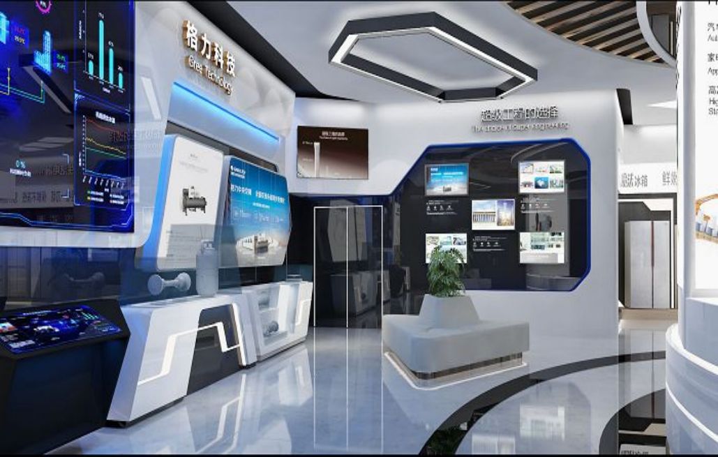 設(shè)計(jì)思路:在白色基調(diào)的基礎(chǔ)上,可以運(yùn)用不同質(zhì)感的白色材料,如啞光白、亮光白、紋理白等,增加展廳的層次感和立體感。同時(shí),合理布置舒適的座椅和休息區(qū)域,為參觀者提供一個(gè)舒適而高端的觀展環(huán)境。通過優(yōu)質(zhì)的觀展體驗(yàn),增強(qiáng)參觀者對格力電器品牌的認(rèn)知和好感度。