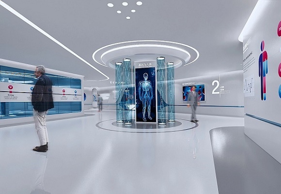 城市:山東菏澤,時(shí)間:2020年6月-9月。展廳布局簡潔,白色為主,藍(lán)色點(diǎn)綴,聲光電演繹生命奧秘,展示企業(yè)細(xì)胞生命科技實(shí)力。 -