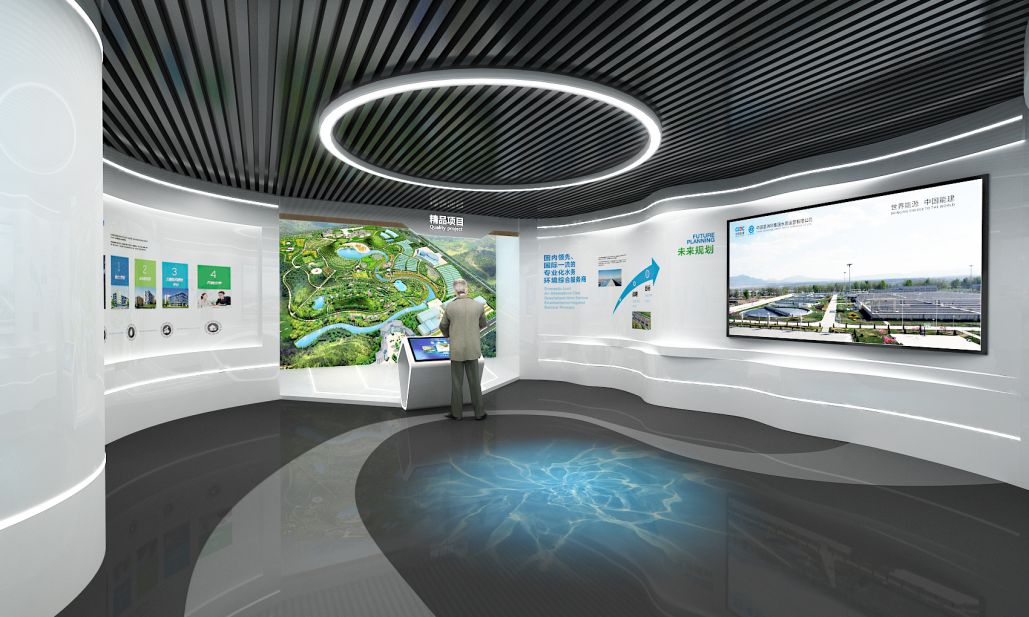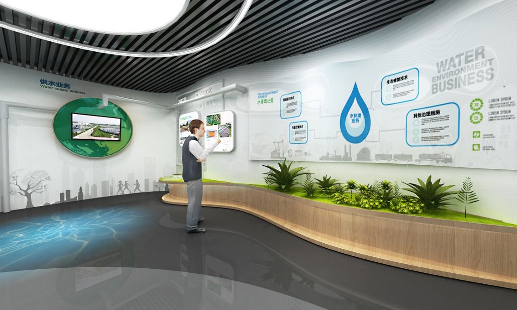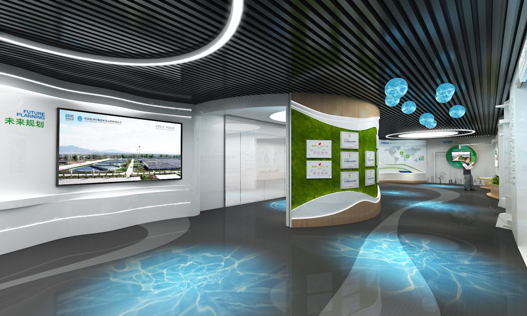 設(shè)計(jì)思路:以水資源為核心,展現(xiàn)現(xiàn)代水務(wù)文化與可持續(xù)發(fā)展理念。運(yùn)用科技手段,生動(dòng)呈現(xiàn)水資源保護(hù)與利用的重要性。打造互動(dòng)體驗(yàn)區(qū),提升參觀者參與度。整體設(shè)計(jì)現(xiàn)代簡(jiǎn)潔,凸顯水務(wù)公司的專業(yè)與創(chuàng)新形象。