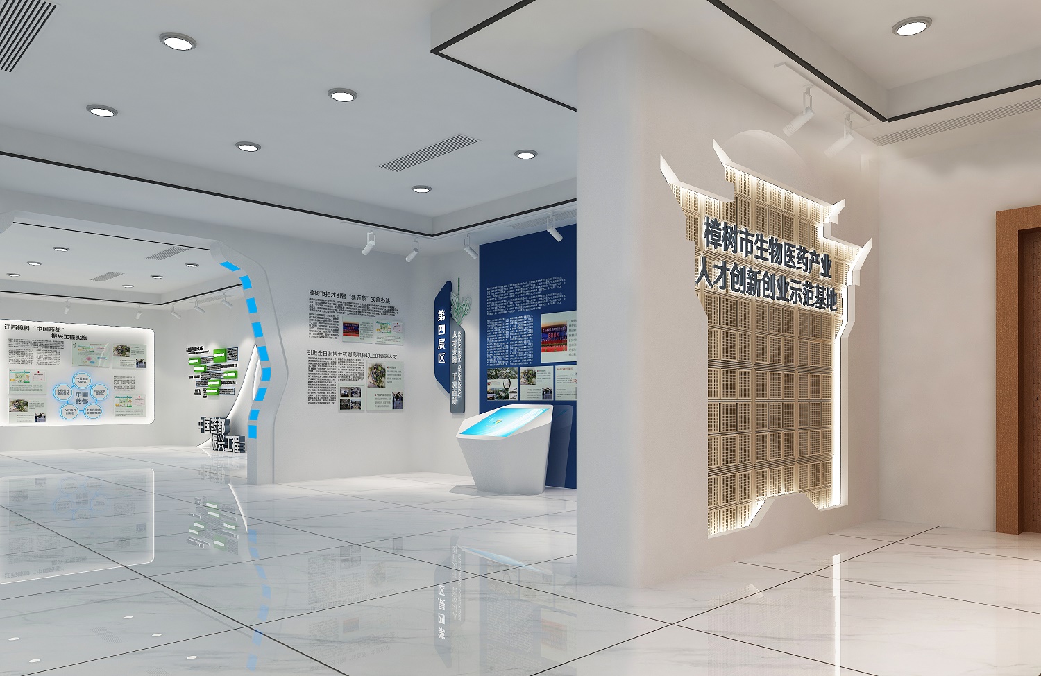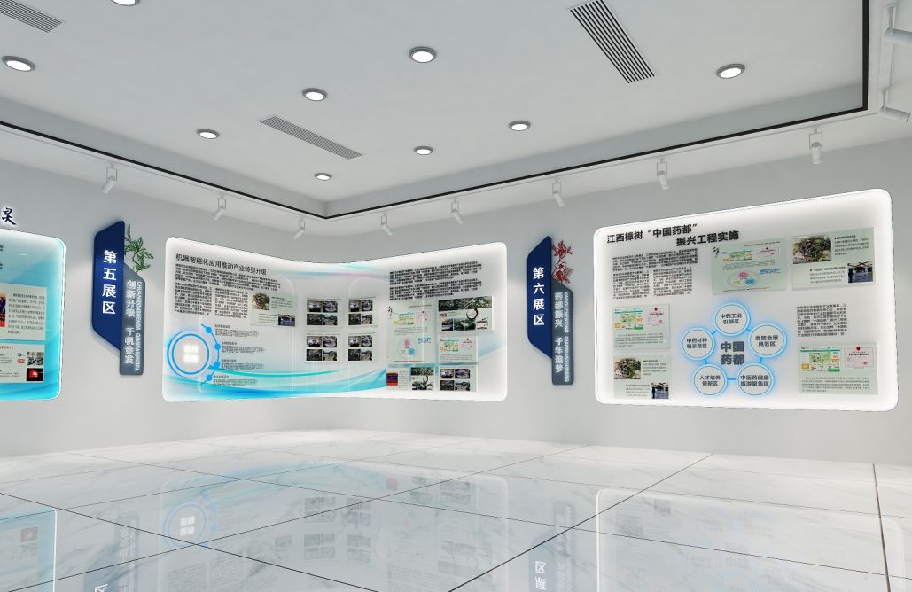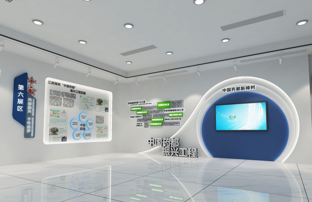 設計思路:以醫(yī)藥人才培養(yǎng)與創(chuàng)新為核心,通過現(xiàn)代展示手法,呈現(xiàn)基地的發(fā)展歷程、創(chuàng)新成果與人才風采。空間布局靈活開放,色彩搭配專業(yè)而富有活力,營造創(chuàng)新、進取的展示氛圍,吸引更多優(yōu)秀人才加入醫(yī)藥創(chuàng)新行列。