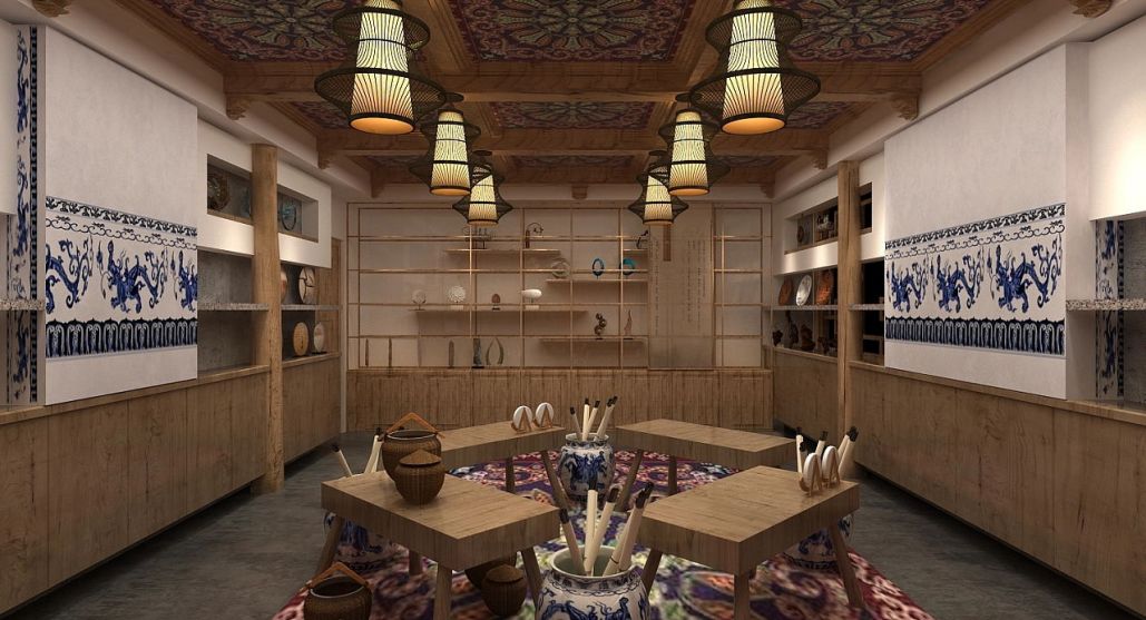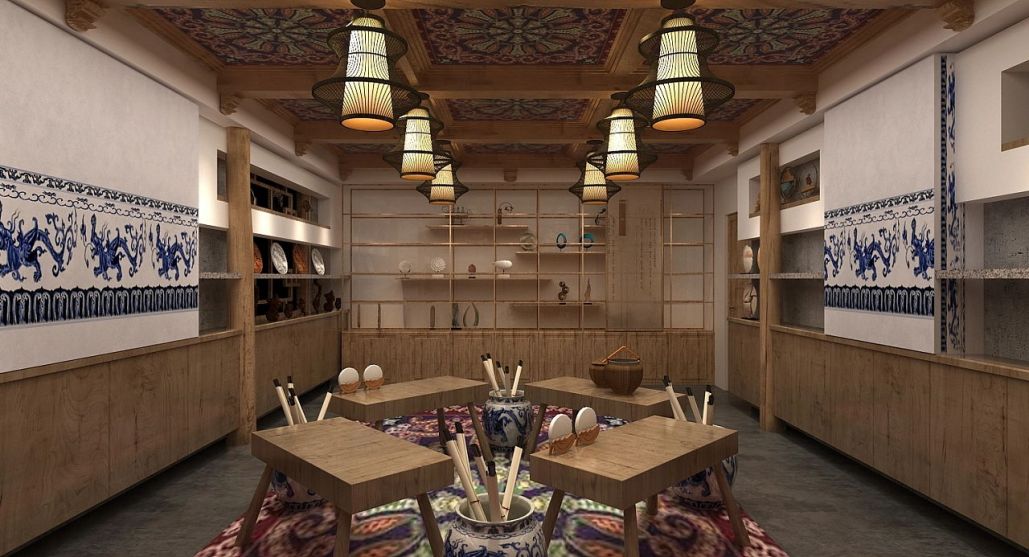 設(shè)計(jì)思路:在空間氛圍營造上,注重傳統(tǒng)與現(xiàn)代的融合。采用古典的裝飾元素,如屏風(fēng)、窗欞、燈籠等,營造出古樸典雅的氛圍;同時(shí),結(jié)合現(xiàn)代的設(shè)計(jì)理念和技術(shù)手段,打造出舒適、便捷的參觀環(huán)境。