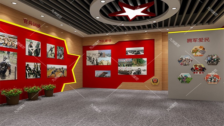 設(shè)計(jì)思路:突出展示黨員在部隊(duì)中的先鋒模范作用,以及部隊(duì)如何貫徹落實(shí)黨的路線方針政策,體現(xiàn)黨建與部隊(duì)文化的相互促進(jìn)和共同發(fā)展。借助智能導(dǎo)覽系統(tǒng)、互動(dòng)問(wèn)答等科技設(shè)備,提高參觀者的參與度和體驗(yàn)感,使展廳更具吸引力和教育意義。
