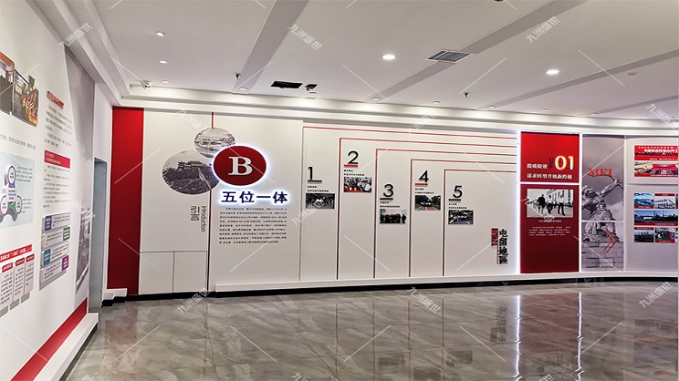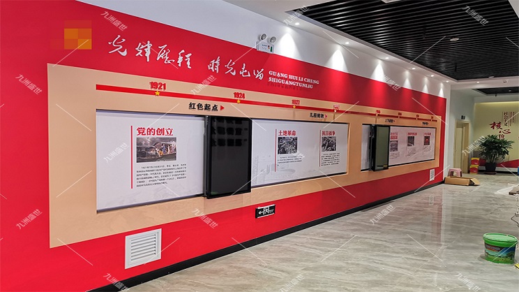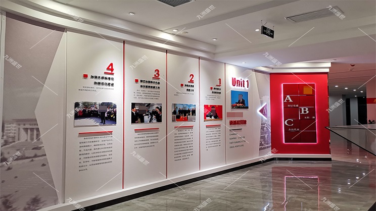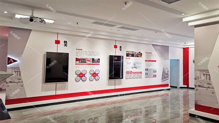 設(shè)計思路:通過設(shè)置主題墻或主題展區(qū)來集中展示,同時輔以多媒體設(shè)備播放相關(guān)視頻或音頻資料,使參觀者能夠直觀地感受到黨建文化的深厚底蘊。此外,展廳的內(nèi)容應(yīng)豐富多樣,涵蓋黨的歷史、黨的成就、黨的優(yōu)良傳統(tǒng)和作風(fēng)等方面,可以通過圖文結(jié)合、實物展示、場景再現(xiàn)等方式來呈現(xiàn)。